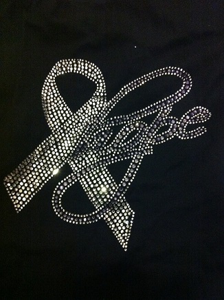 For National Alzheimer’s Disease Awarenss Month …my black blinged out tee from Bling Your Brand….ribbon with purple hope!